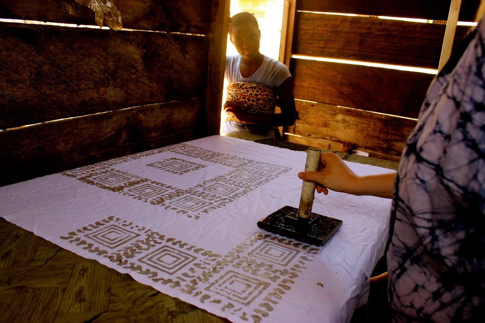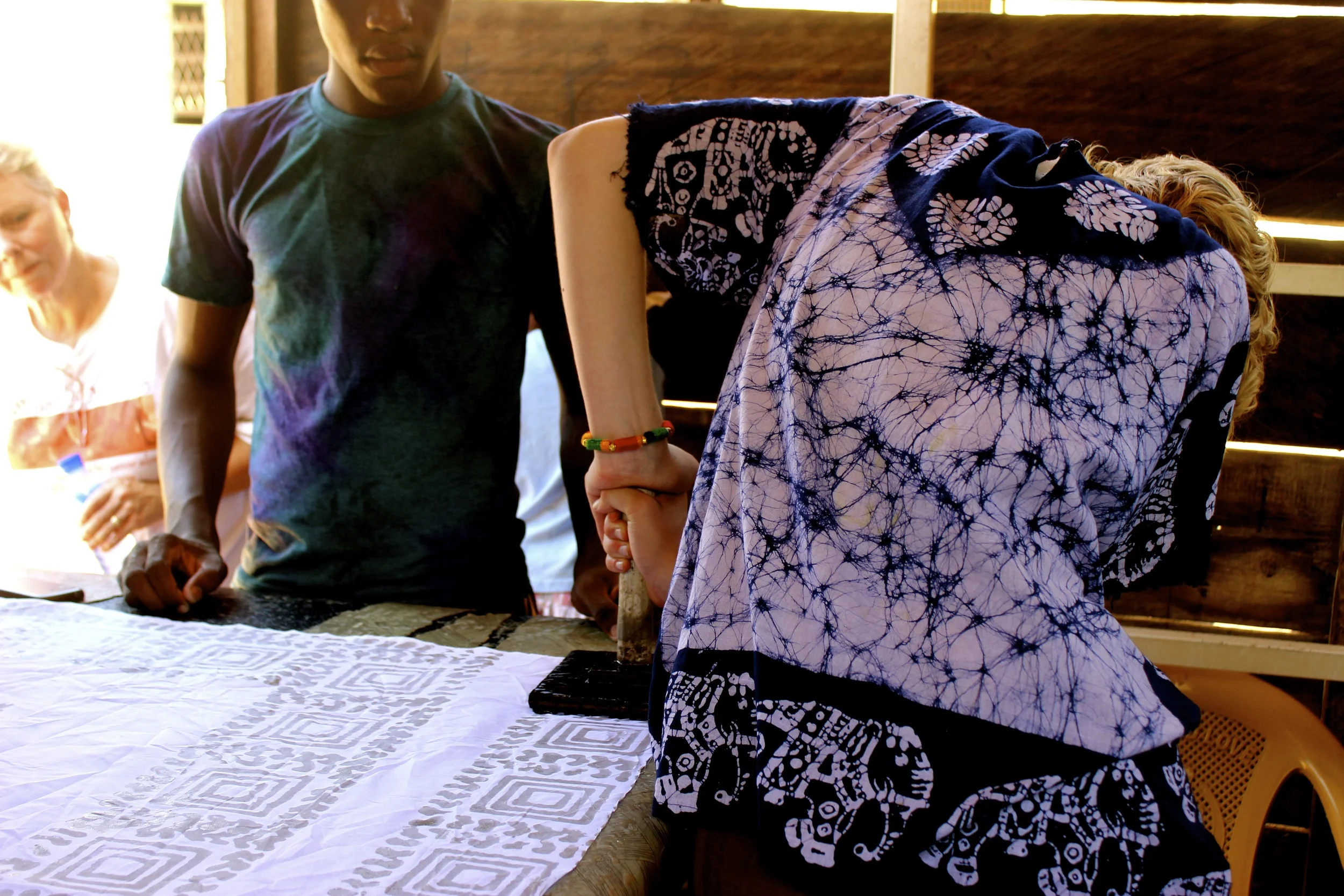 My team understanding of the Mamas fabric making process by participating in a batikking demonstration at one of the mamas workshops, where we observed some of the common missteps in the fabric dying process that lead to fabrics not up to the standards required for wholesale sales. We also had a chance to meet with one of the company's founders to review the company's goals and history. Drawing on these experiences, my team of three students spent time brainstorming ideas for products that could use irregularly printed fabrics and campaigns that would bring these products together around a theme.