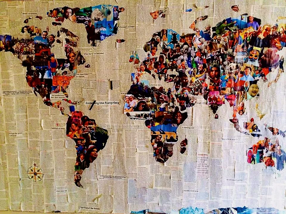 The map was a project me and my sister completed over winter break of my sophomore year. It took hours of collaging and lots of paper and newspaper cutting to get the 49" x 32" map filled up, but the end result turned out pretty cool. (The picture doesn't do it justice.)
